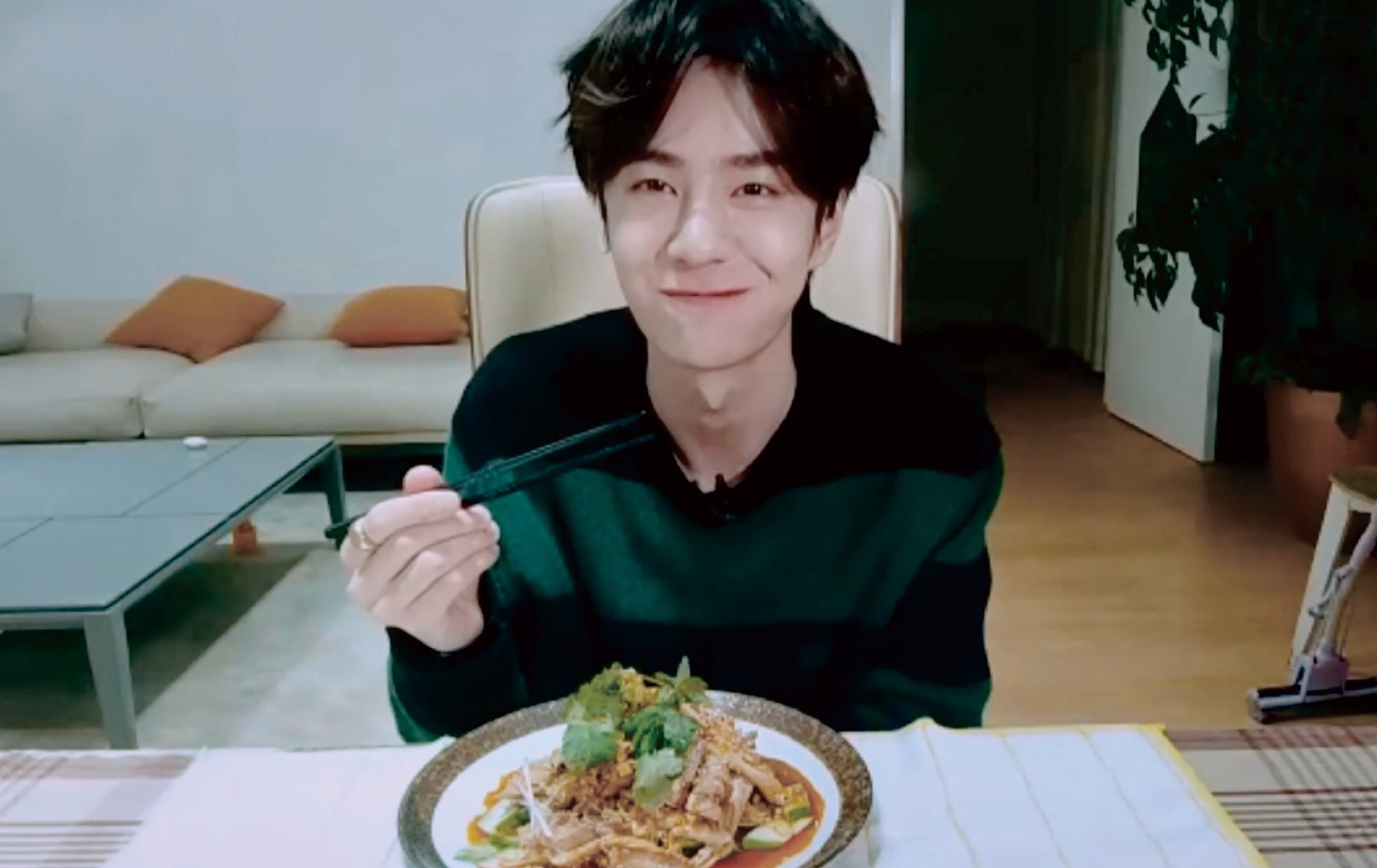 Xiao Zhan grabbed a tray of food, then made his way over to the table.