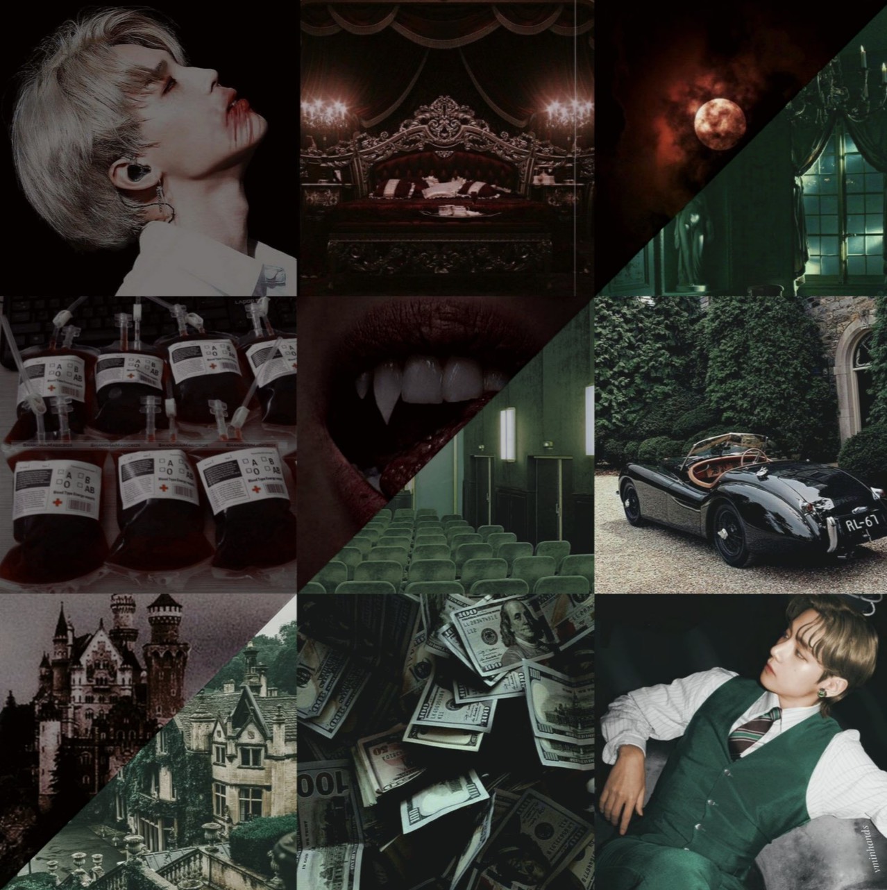 “Isn’t he gorgeous?” the auctioneer says when she notices Taehyung’s stare. She walks behind the couch where the vampire has been seated, right across Taehyung, and leans over him. “You’re quite the lucky man, Taehyung-ssi, not everybody can claim to have a vampire such as Park Jimin as a source.”