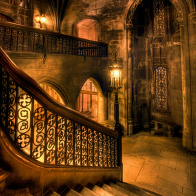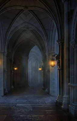 From the entrance hall, you were led to an empty chamber room that buzzed with the noise that leaked through its wooden door. Inside, the professor finally turned to address you. The woman was as tall as she was lean with an arrow straight back. Her stiff disposition was accented by the tightly wound hair that sat in a neat bun behind her head. Austere eyes stared down from behind the mousy glasses that rested on the bridge of her nose. She took the time to explain the various houses, their significance within the school, and the imminent Sorting Ceremony that would prelude it all. After a painfully short pause - which one boy used to straighten a cloak that he didn't seem to realize was backward - you were all led into the Great Hall.