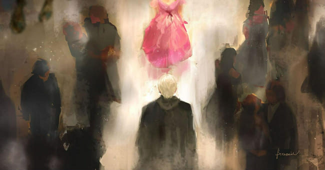 The murmuring of a hushed voice that slipped past the alley you were about to pass rooted your feet to the ground. Anxiety molted into fear as you thought for a moment that one of the voices had spoken your name. A small well of relief sprung inside you at the notion that Hagrid might have been stationed between those narrow brick walls, yet a voice inside your head caused a chill to fill your stomach as it aired its doubts. Bolstering your courage, you pressed your shoulder against the dilapidated brick wall and cautiously peered down the alleyway. Two men stood huddled together a few meters down, both draped in black cloaks, but one stuck out from the other; his slicked, platinum hair and pallid complexion shone like a star in the night sky against his dark attire.