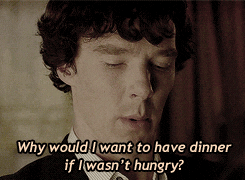 “Well, no, it’s an inherent need, I need cases more than I need food and water, and my brain needs something to focus on. If it doesn’t it crumbles and leads me to drugs. It always has, I need a stimulant continuously, and for example if we didn’t have this conversation in the present I’d be doing anything, an experiment most likely, just waiting for the next case. If the gap between cases gets too long, I need drugs just to pass the time eventually. So to answer your question, no I would solve puzzles even if I wasn’t needed making any positive emotion about being needed irrelevant. This can further be proven by the fact that most of the London metropolitan hate having me around, hence why the cases need me more than any emotion around want towards me is there or not.”