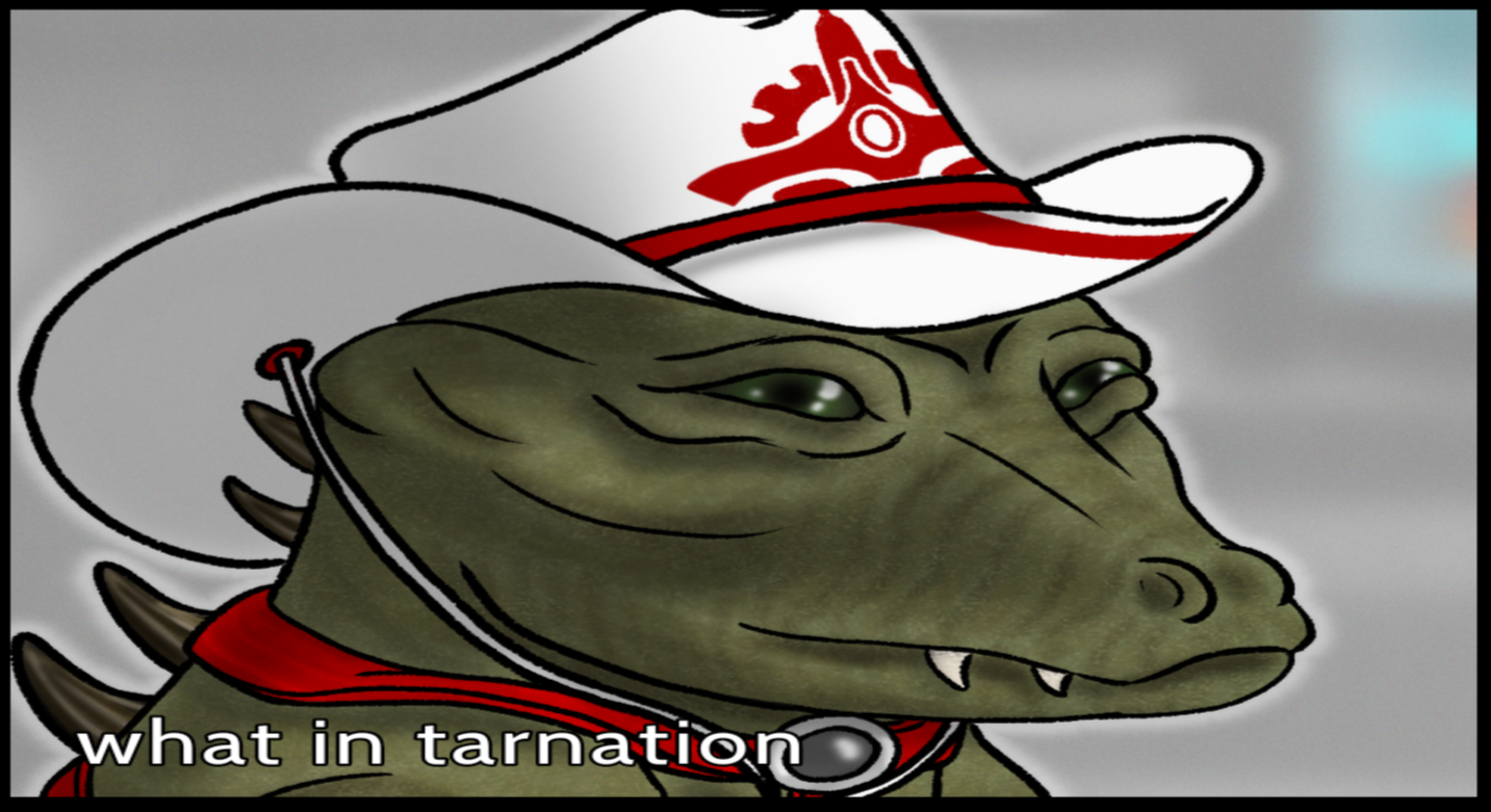 Meme redraw with Grizzer as the 'what in tarnation' dog.