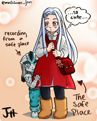 So here they were, waiting for the performance to start in a darkened room full of humans. Mirio was kind enough to lift him up on his left shoulder, as he'd taken Eri on his right.