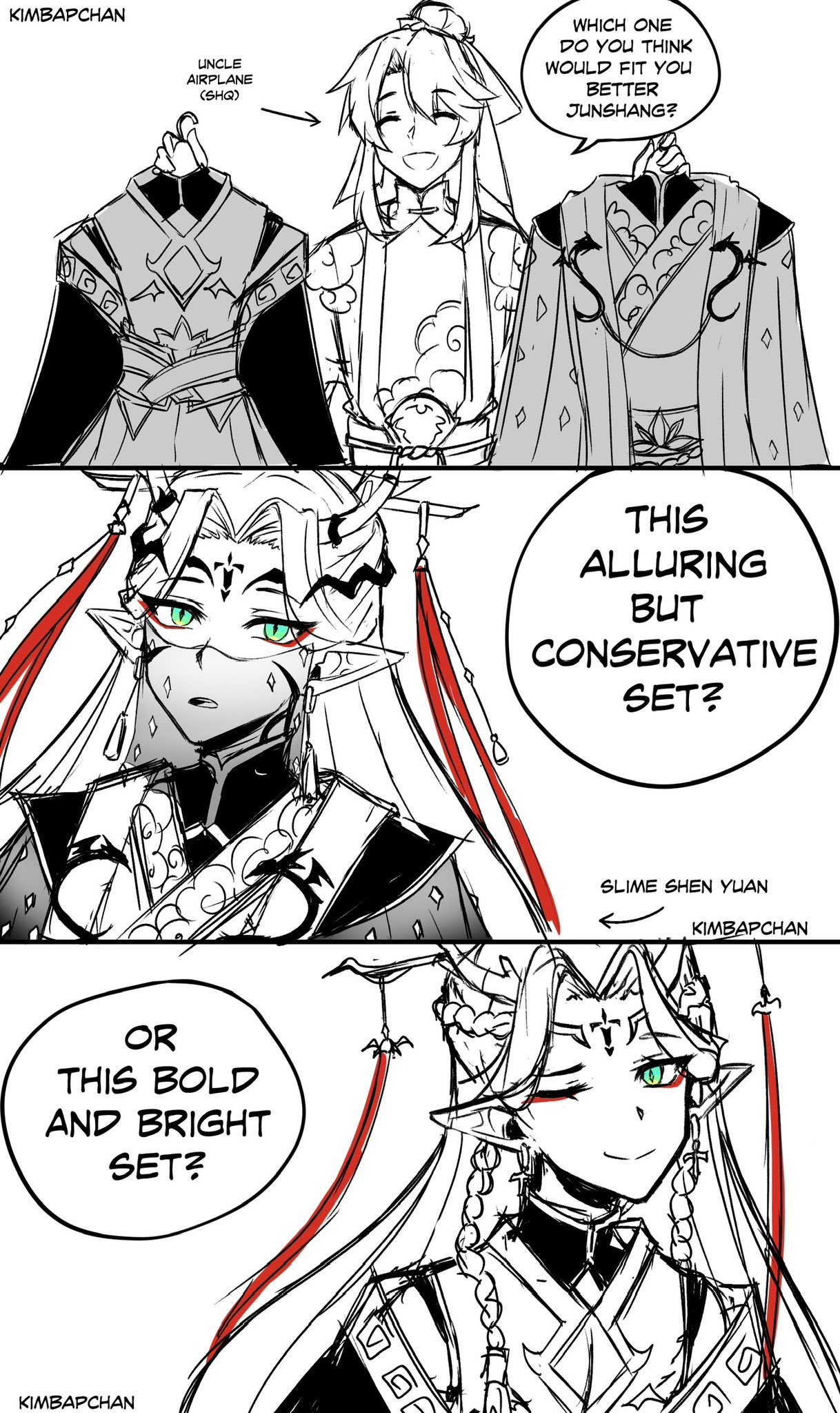 “This Disci- This lord knows he has much to explain to Sect Leader Yue and the Cang Qiong Peak lords.” Shen Yuan started as he glanced around the room, looking at all eleven Peak Lords present. Surprisingly, even Uncle Airplane was there. “But this one would like to make it clear first that my Shizun was not aware of this Lord’s identity as a demon. This lord requests to leave my Shizun out should Sect Leader Yue seek to question this one’s loyalty to my sect.”