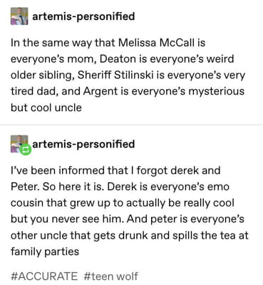 “Sad that’s our pack motto,” Sara said, nudging Stiles. The sound of the bell for everyone to get onto the field ringing out. “Sara,” Scott said, just before she could leave. “If the Beast shows up-”