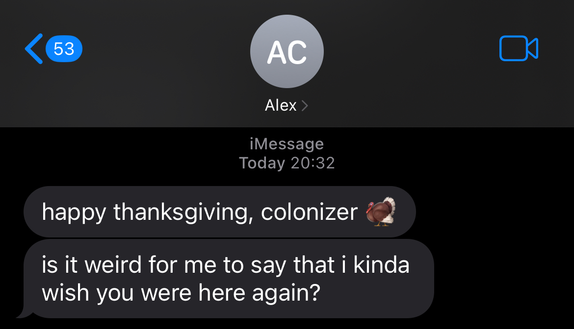“Thanksgiving is coming up,” Alex mentioned, as if Henry hadn’t been living in New York for the last four years and wasn’t familiar with American holidays.