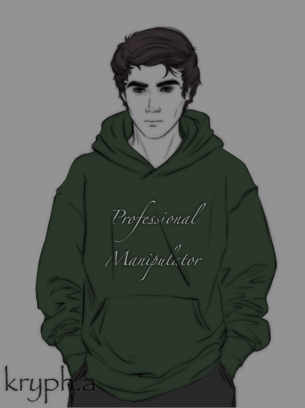 By the towering windows peering into the depths of the Black Lake, a blind boy smirked knowingly, pale features serene yet intent as younger students pointed and whispered excitedly at some fancied shape in the murky waters.