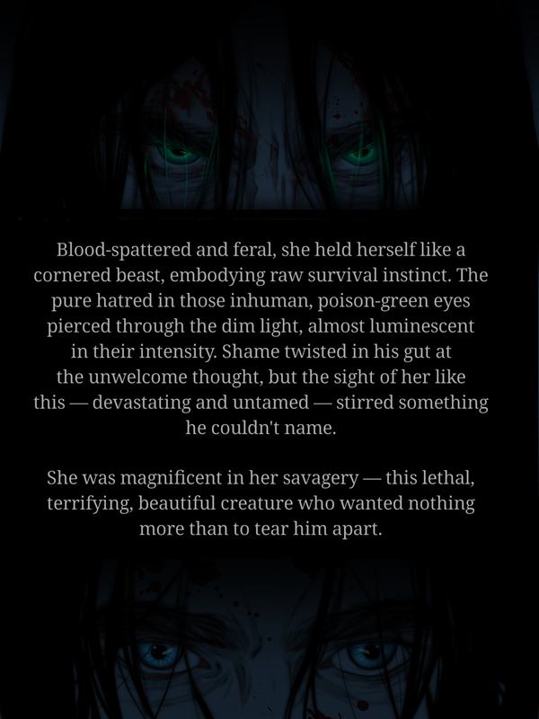 Every instinct screamed at her to flee — from this room, this dungeon, this nightmare made flesh. But her muscles had locked into place, terror whispering that the slightest movement might draw that thing's attention back to her.