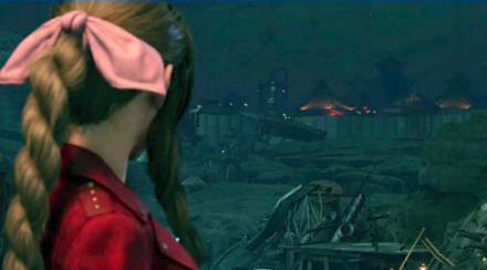 Aerith stood outside of the Honeybee Inn waiting for the two new 'girls' to come out. Andrea gave her his endorsement letter recommending them to Corneo's audition. It's took a while, but now they can finally go and save Tifa.