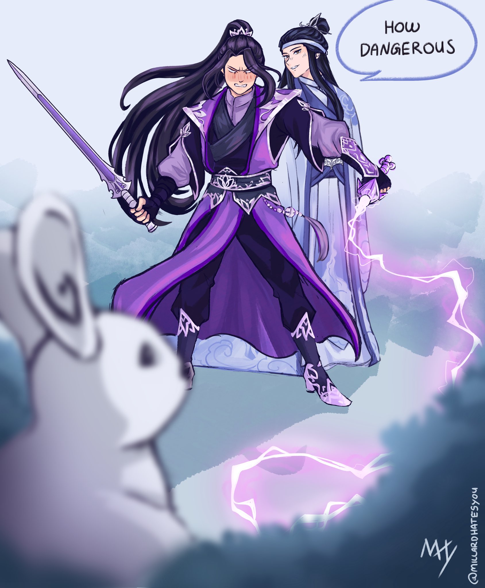 “What did you say?!” Jiang Cheng shouted, Zidian bursting into his hand with a loud crack. A threatening purple glow swept across the courtyard, lighting up the young disciple’s fear-stricken face.