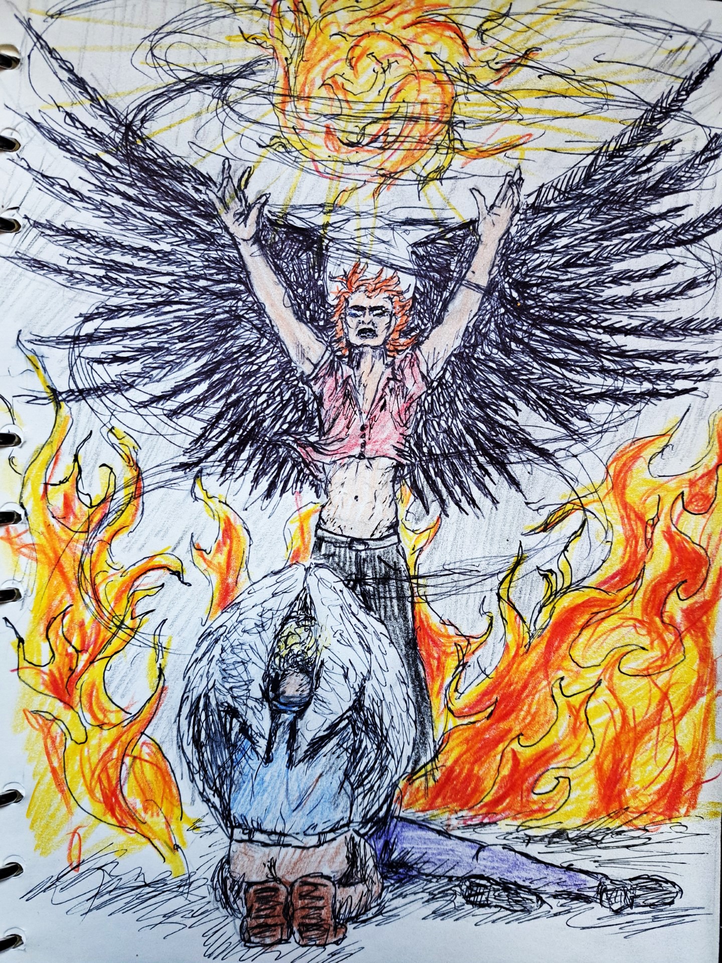 “We are not at all alike,” spoke Aziraphale with a voice cold as the grim reaper’s touch. “I am an Angel. You, sir, are FALLEN. I am of light, truth, love and loyalty and CAN NOT be tempted by acts of unholy trickery. While YOU, demon, are of brimstone, despair, and temptation incarnate. Ironic… for one who failed the first temptation they ever faced.”