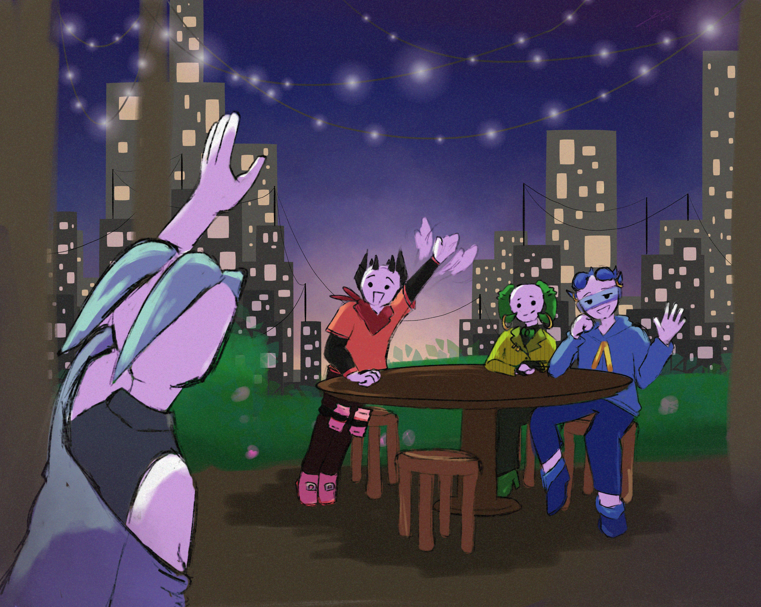 “You’re such a party pooper, Catapult.” Soda stuck out her tongue, pulling out a can of her gear and cracking it open. Catapult sighed, watching the smaller demon down the drink like it was nothing.