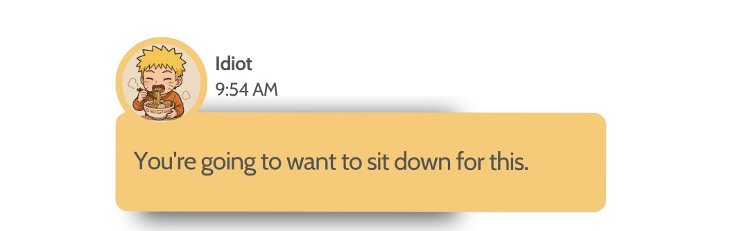 And she, the idiot, had spent the last ten minutes treating it like a comedy sketch.