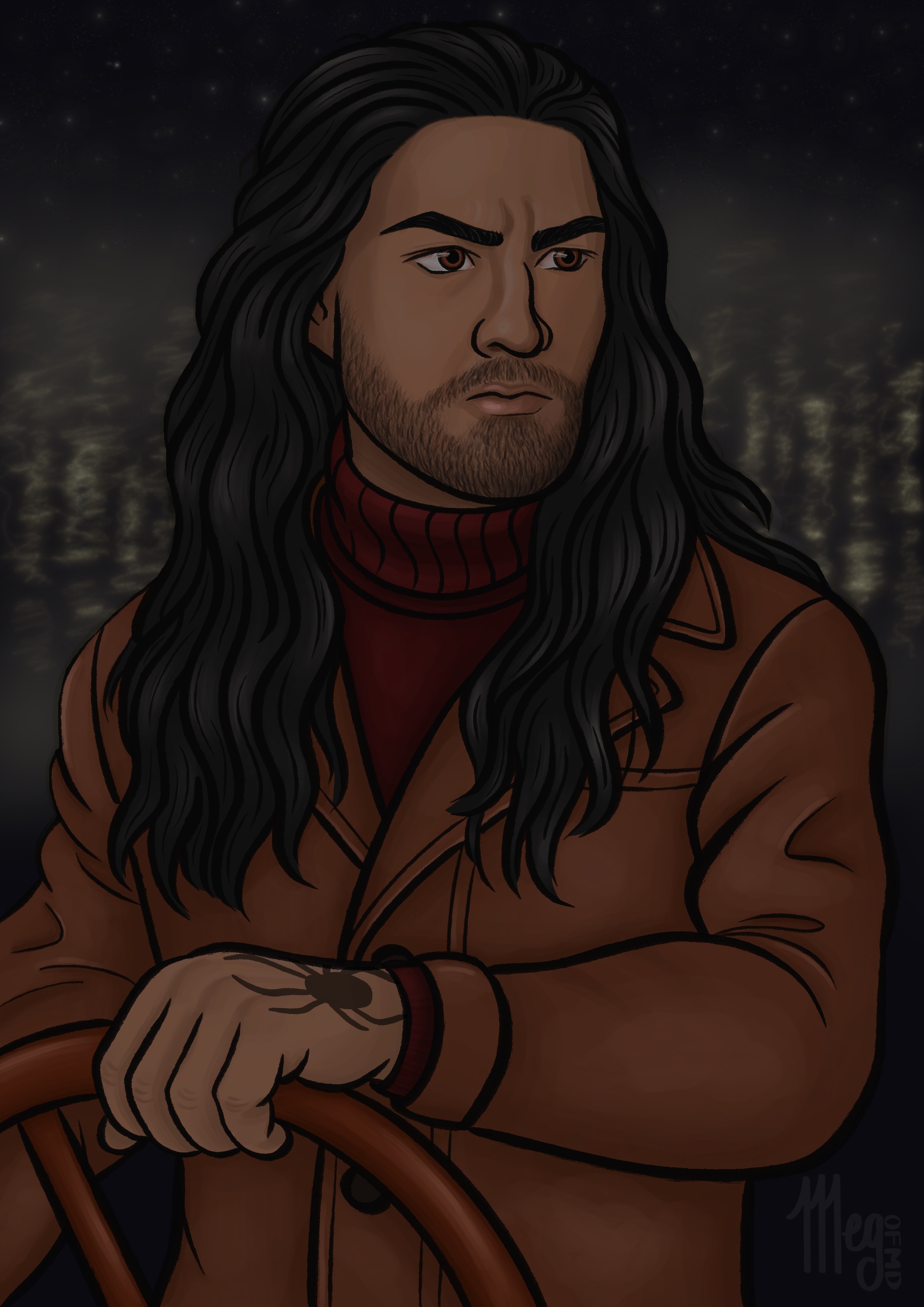 He squints down at the compass, turning the wheel slightly, adjusting his course toward the next bay. The stars overhead are faint, smudged by city glow, but the moon is still bright, casting silver lines across the dark water. It's peaceful, in a way he hadn’t expected. Peaceful and cold.