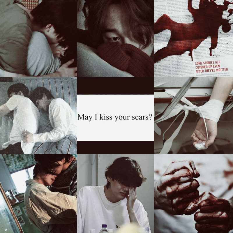 Taehyung goes back inside the room and takes his seat next to the girl’s bed again. Not too close, not too far. She still has his jacket around her, knuckles white where she clutches it.