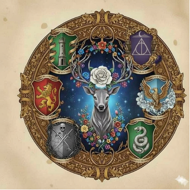 Sur la première double page, il reconnaît le blason des Potter : un cerf argenté sur fond bleu nuit. La lignée remontait loin, bien plus loin que ce qu'il avait imaginé. Et là, au détour d'une branche, un nom surgit : Ignotus Peverell. Relié par une fine ligne dorée, presque effacée.