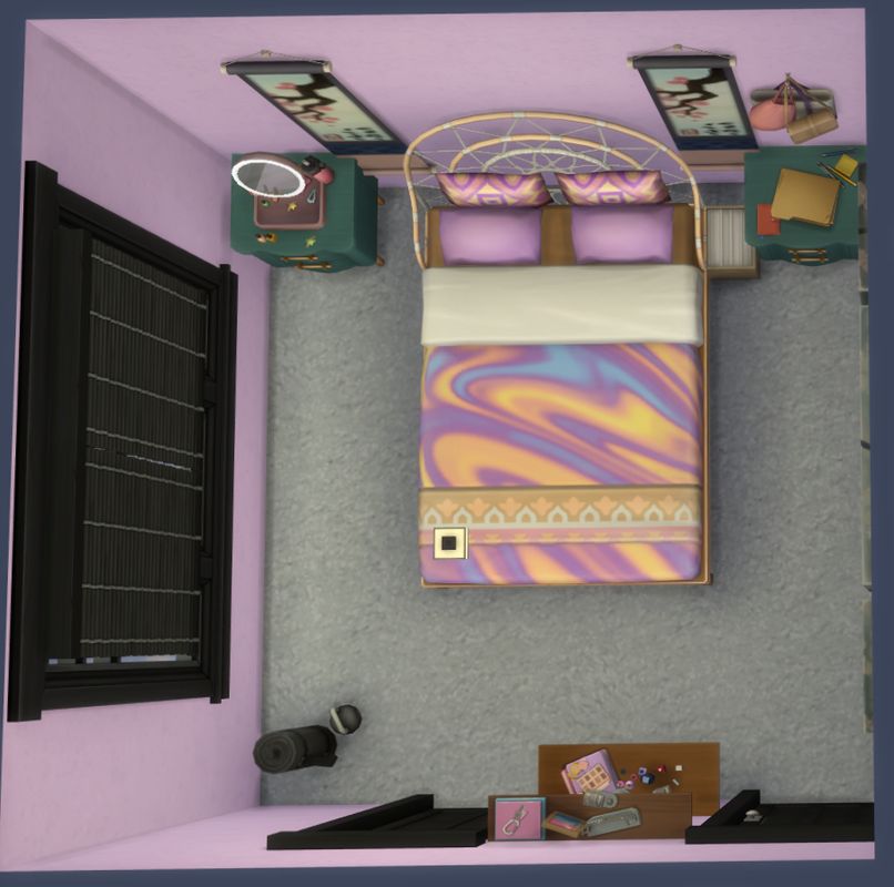 They made their way into her bedroom, where Naruto plopped himself on the edge of her bed. Her bedsheets were a swirled pattern of purple blue and yellow, there were files and girly things he couldn’t name scattered across different shelves and surfaces.