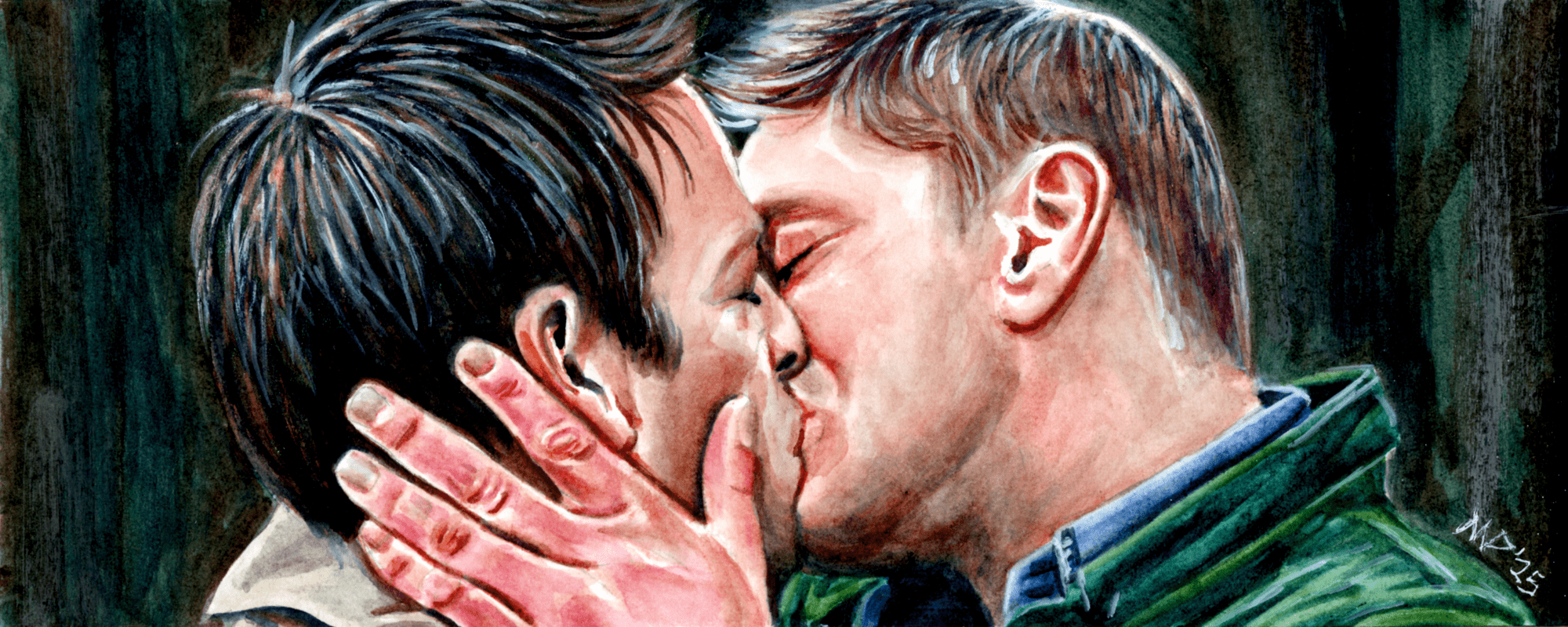 The thread of Cas’ self restraint seemed to snap. He grasped Dean’s collar, turned him around and slammed him back against the wall before leaning in to smash their lips together.